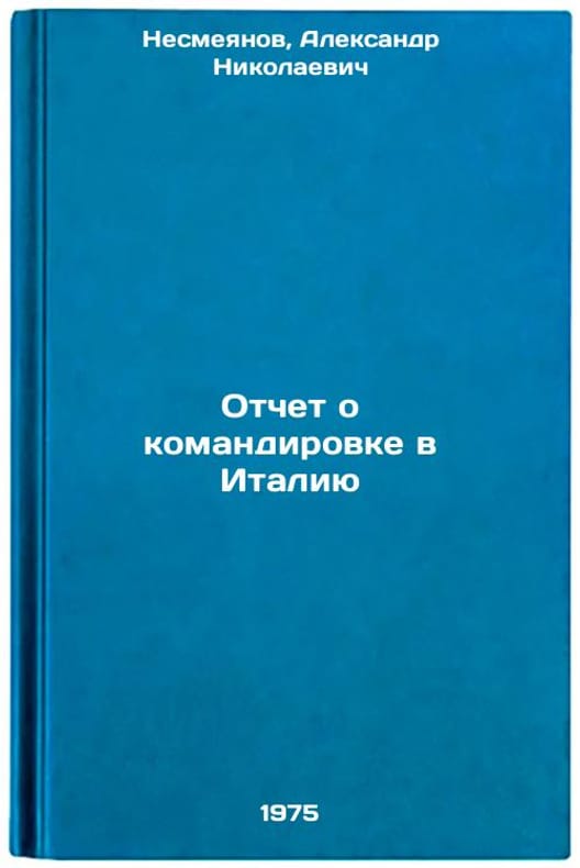In Russian. Nesmeyanov, Alexander Nikolaevich. Report on mission to Italy. Moscow: 1975. All images are for identification of editions only. Several books of the same edition may be available. Please feel free to request photos of available books. SKU6946293