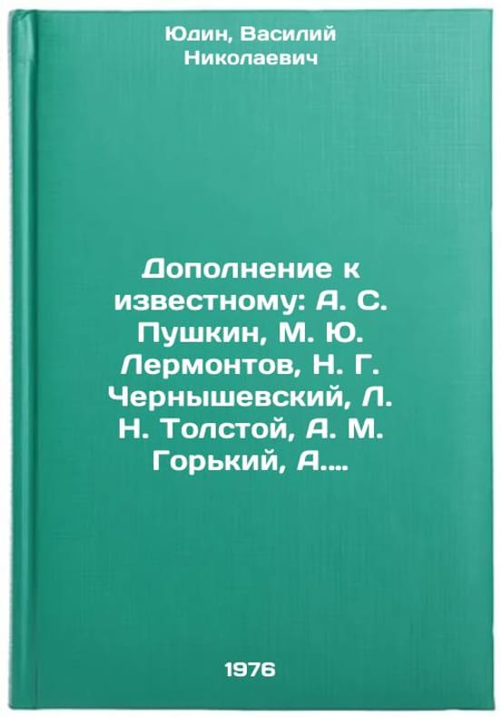 In Russian. Yudin, Vasily Nikolaevich. Supplement to the Famous: A. S. Pushkin, M. Yu. Lermontov, N. G. Chernyshevsky, L. N. Tolstoy, A. M. Gorky, A. S. Serafimovich. Volgograd: Nizhniy Volga Book Publishing House, 1976. Dopolnenie k izvestnomu: A. S. Pushkin, M. Yu. Lermontov, N. G. Chernyshevskiy, L. N. Tolstoy, A. M. Gor'kiy, A. S. Serafimovich. In Russian /Supplement to the Famous: A. S. Pushkin, M. Yu. Lermontov, N. G. Chernyshevsky, L. N. Tolstoy, A. M. Gorky, A. S. Serafimovich . All images are for identification of editions only. Several books of the same edition may be available. Please feel free to request photos of available books. SKU6946529