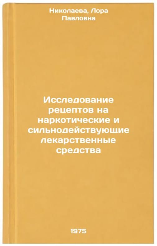 In Russian. Nikolaeva, Laura Pavlovna. Research on Prescriptions for Narcotic and Strong Drugs. Moscow: 1975. Issledovanie retseptov na narkoticheskie i sil'nodeystvuyushchie lekarstvennye sredstva. In Russian /Research on Prescriptions for Narcotic and Hard Drugs. All images are for identification of editions only. Several books of the same edition may be available. Please feel free to request photos of available books. SKU6946978