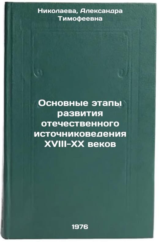 In Russian. Nikolaeva, Alexandra Timofeevna. The main stages of development of domestic source studies of the 18th-20th centuries. Moscow: 1975 (vol. 1976). Osnovnye etapy razvitiya otechestvennogo istochnikovedeniya XVIII-XX vekov. In Russian /The main stages of the development of Russian source studies in the 18th-20th centuries . All images are for identification of editions only. Several books of the same edition may be available. Please feel free to request photos of available books. SKU6947507
