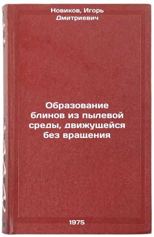 In Russian. Novikov, Igor Dmitrievich. Formation of pancakes from a dust medium moving without rotation. Moscow: 1975. Obrazovanie blinov iz pylevoy sredy, dvizhushcheysya bez vrashcheniya. In Russian /Formation of pancakes from a dust medium moving without rotation. All images are for identification of editions only. Several books of the same edition may be available. Please feel free to request photos of available books. SKU6948746