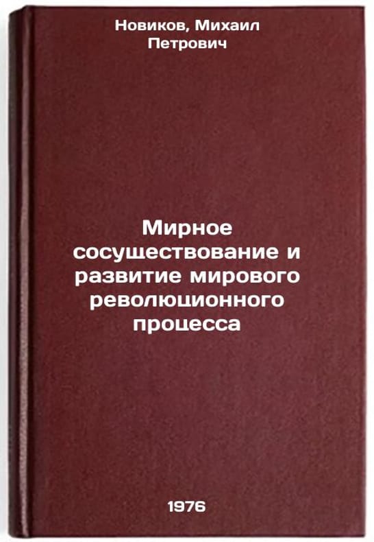 In Russian. Novikov, Mikhail Petrovich. Peaceful Coexistence and Development of the Global Revolutionary Process. Tashkent: 1976. Mirnoe sosushchestvovanie i razvitie mirovogo revolyutsionnogo protsessa. In Russian /Peaceful coexistence and development of the world revolutionary process . All images are for identification of editions only. Several books of the same edition may be available. Please feel free to request photos of available books. SKU6949298