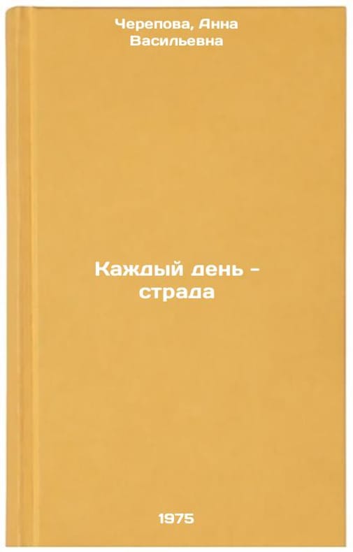 In Russian. Cherepova, Anna Vasilievna. Every Day is Strada. Moscow: Soviet Russia, 1975. All images are for identification of editions only. Several books of the same edition may be available. Please feel free to request photos of available books. SKU6949943