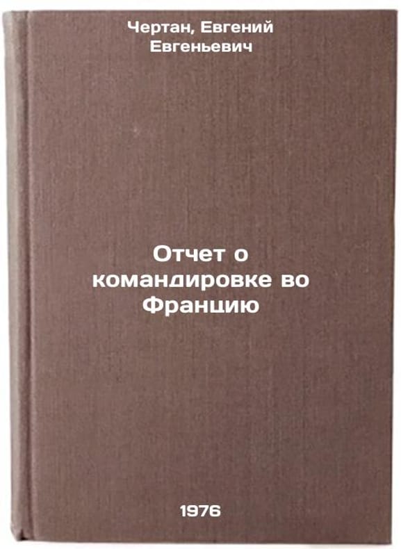 In Russian. Chertan, Evgeniy Evgenievich. Report on mission to France. Moscow: 1976. All images are for identification of editions only. Several books of the same edition may be available. Please feel free to request photos of available books. SKU6950214
