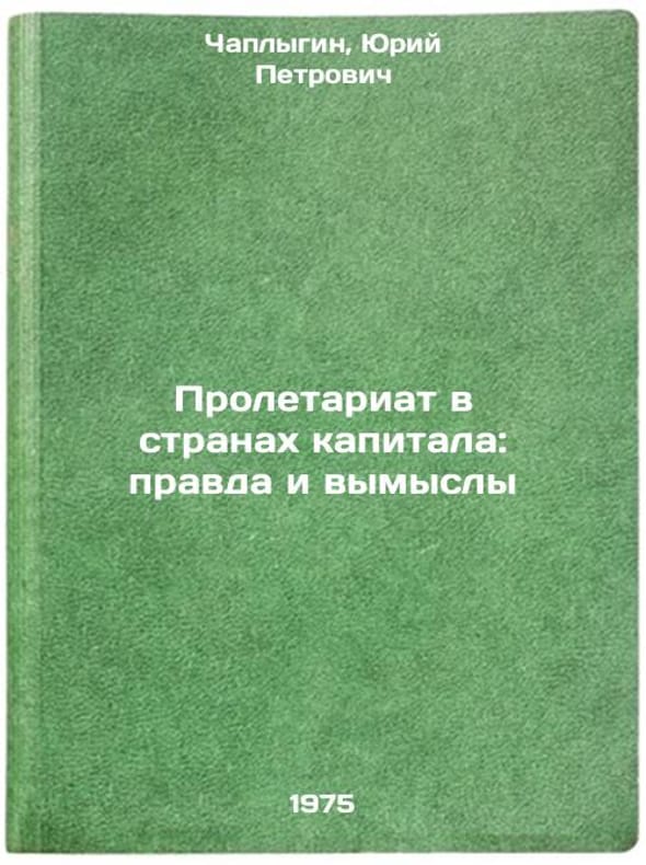In Russian. Chaplygin, Yuri Petrovich. The proletariat in the countries of capital: truth and fiction. Moscow: Profizdat, 1975. Proletariat v stranakh kapitala: pravda i vymysly. In Russian /The proletariat in the countries of capital: truth and fiction. All images are for identification of editions only. Several books of the same edition may be available. Please feel free to request photos of available books. SKU6950446