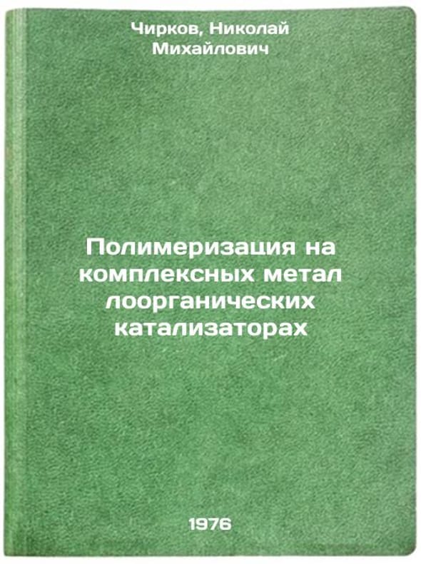 In Russian. Chirkov, Nikolai Mikhailovich. Polymerization on complex organometallic catalysts. Moscow: Chemistry, 1976. Polimerizatsiya na kompleksnykh metalloorganicheskikh katalizatorakh. In Russian /Polymerization on complex organometallic catalysts . All images are for identification of editions only. Several books of the same edition may be available. Please feel free to request photos of available books. SKU6950776