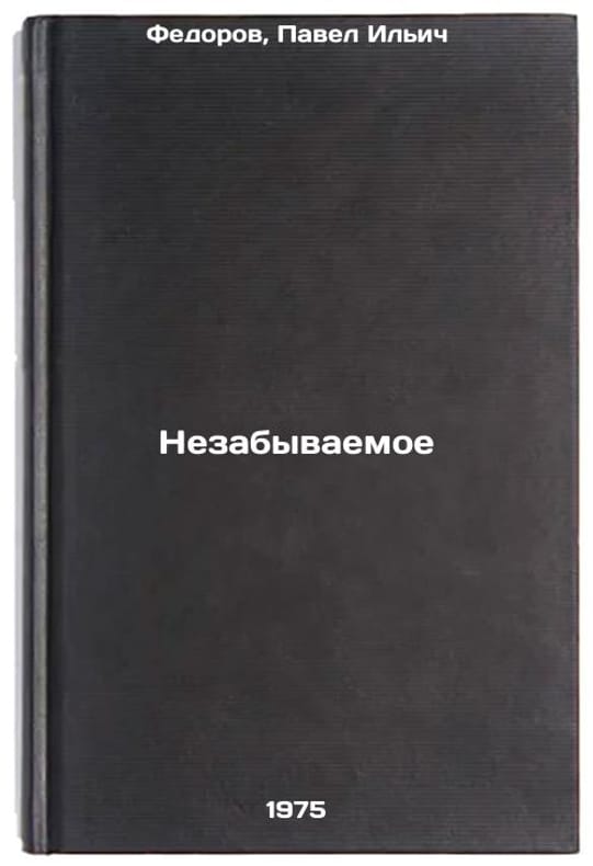In Russian. Fedorov, Pavel Ilyich. Unforgettable. Moscow: Voenizdat, 1975. All images are for identification of editions only. Several books of the same edition may be available. Please feel free to request photos of available books. SKU6951237