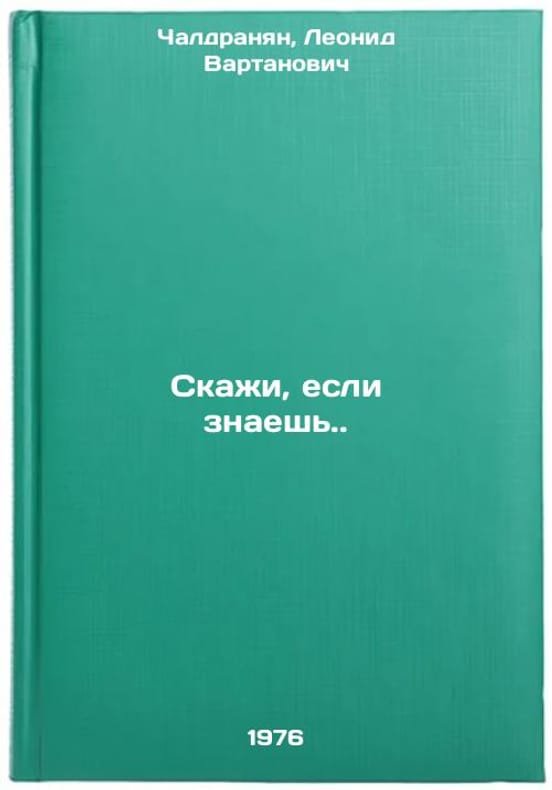 In Russian. Chaldranyan, Leonid Vartanovich. Tell me if you know. Kyiv: Rad. transcriber, 1976. All images are for identification of editions only. Several books of the same edition may be available. Please feel free to request photos of available books. SKU6951772