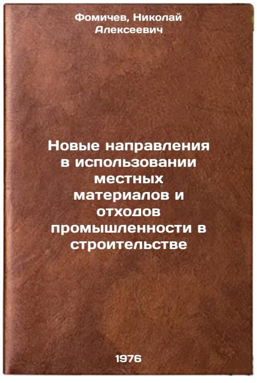 In Russian. Fomichev, Nikolai Alekseevich. New Directions in the Use of Local Materials and Industrial Waste in Construction. Moscow: 1976. Novye napravleniya v ispol'zovanii mestnykh materialov i otkhodov promyshlennosti v stroitel'stve. In Russian /New Directions in the Use of Local Materials and Industrial Waste in Construction . All images are for identification of editions only. Several books of the same edition may be available. Please feel free to request photos of available books. SKU6953581