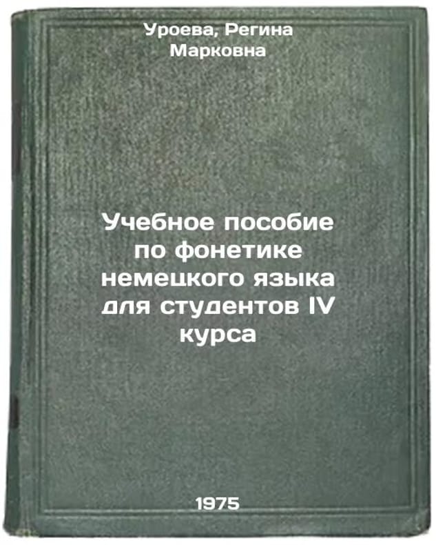 In Russian. Uroeva, Regina Markovna. A textbook on German phonetics for fourth-year students. Moscow: 1975. Uchebnoe posobie po fonetike nemetskogo yazyka dlya studentov IV kursa. In Russian /German Language Phonetics Textbook for Fourth Year Students. All images are for identification of editions only. Several books of the same edition may be available. Please feel free to request photos of available books. SKU6954775