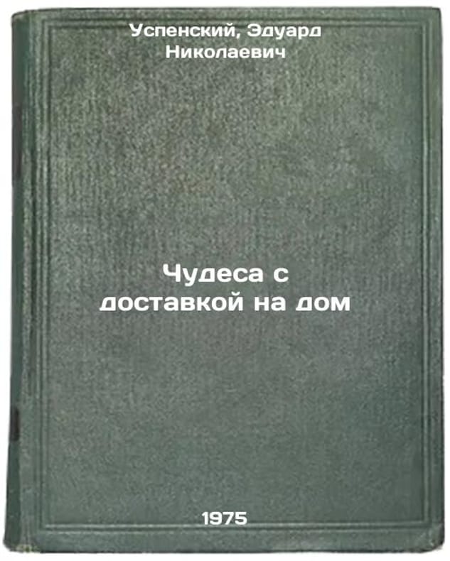 Short description: In Russian. Uspensky, Eduard Nikolaevich. Miracles with home delivery. Moscow: Soviet Russia, 1975. The image is provided for reference only. It may reflect condition of one of the available copies or only help in identifying the edition. Please feel free to contact us for a detailed description of the copies available. SKU6954901