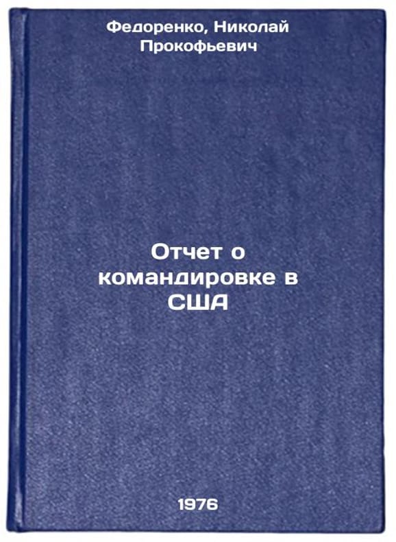 In Russian. Fedorenko, Nikolai Prokofievich. Report on a mission to the USA. Moscow: 1976. Otchet o komandirovke v SShA. In Russian /Report on a mission to the United States . All images are for identification of editions only. Several books of the same edition may be available. Please feel free to request photos of available books. SKU6955529