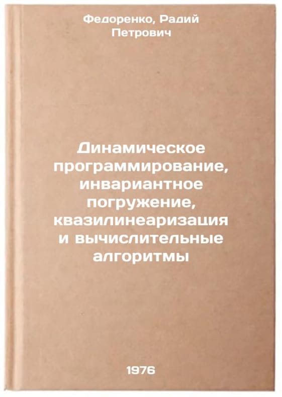 In Russian. Fedorenko, Radiy Petrovich. Dynamic programming, invariant immersion, quasilinearization and computational algorithms. Moscow: 1976. Dinamicheskoe programmirovanie, invariantnoe pogruzhenie, kvazilinearizatsiya i vychislitel'nye algoritmy. In Russian /Dynamic programming, invariant immersion, quasilinearization and computational algorithms . All images are for identification of editions only. Several books of the same edition may be available. Please feel free to request photos of available books. SKU6955530