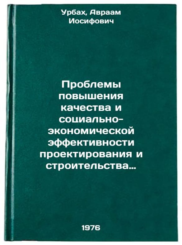 In Russian. Urbach, Abraham Iosifovich. Problems of Improving the Quality and Socio-Economic Efficiency of Design and Construction of Public and Commercial Complexes. Moscow: GOSINTI, 1976. Problemy povysheniya kachestva i sotsial'no-ekonomicheskoy effektivnosti proektirovaniya i stroitel'stva obshchestvenno-torgovykh kompleksov. In Russian /Problems of improving the quality and socio-economic efficiency of the design and construction of social and commercial complexes . All images are for identification of editions only. Several books of the same edition may be available. Please feel free to request photos of available books. SKU6956031
