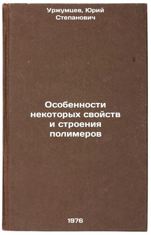 In Russian. Urzhumtsev, Yuri Stepanovich. Features of Certain Properties and Structure of Polymers. Riga: IIPKSNH Latv SSR, 1976. Osobennosti nekotorykh svoystv i stroeniya polimerov. In Russian /Features of Certain Properties and Structure of Polymers . All images are for identification of editions only. Several books of the same edition may be available. Please feel free to request photos of available books. SKU6956038