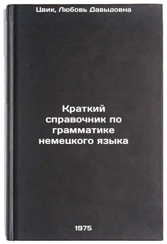 In Russian. Tsvik, Lyubov Davydovna. Brief Guide to German Grammar. Moscow: Enlightenment, 1975. Kratkiy spravochnik po grammatike nemetskogo yazyka. In Russian /A Brief Guide to German Grammar. All images are for identification of editions only. Several books of the same edition may be available. Please feel free to request photos of available books. SKU6956652