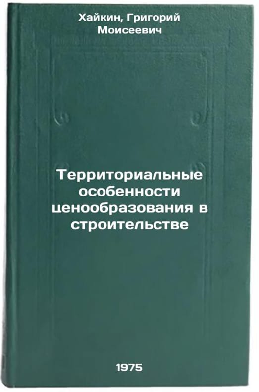 In Russian. Khaikin, Grigory Moiseevich. Territorial Features of Pricing in Construction. Moscow: Stroyizdat, 1975. Territorial'nye osobennosti tsenoobrazovaniya v stroitel'stve. In Russian /Spatial Features of Construction Pricing. All images are for identification of editions only. Several books of the same edition may be available. Please feel free to request photos of available books. SKU6956971