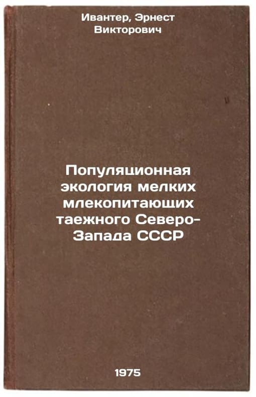 In Russian. Ivanter, Ernest Viktorovich. Population Ecology of Small Mammals of the Taiga Northwest of the USSR. Leningrad: Science. Leningrad Division, 1975. Populyatsionnaya ekologiya melkikh mlekopitayushchikh taezhnogo Severo-Zapada SSSR. In Russian /Population Ecology of Small Mammals in the Taiga Northwest of the USSR. All images are for identification of editions only. Several books of the same edition may be available. Please feel free to request photos of available books. SKU6958408