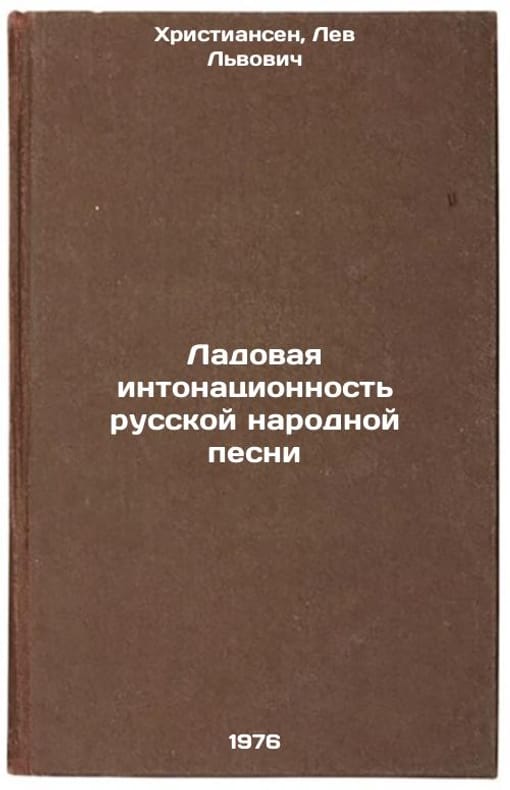 In Russian. Christiansen, Lev Lvovich. Ladovaya intonationality of Russian folk song. Moscow: Soviet Composer, 1976. Ladovaya intonatsionnost' russkoy narodnoy pesni. In Russian /The Ladomatic Intonation of Russian Folk Song . All images are for identification of editions only. Several books of the same edition may be available. Please feel free to request photos of available books. SKU6959065