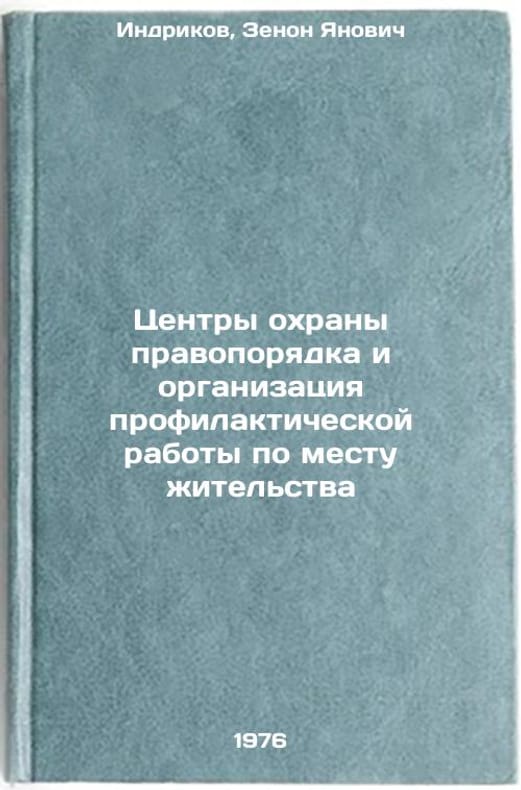 In Russian. Indrikov, Zenon Yanovich. Law enforcement centers and organization of preventive work in the place of residence. Riga: 1976. Tsentry okhrany pravoporyadka i organizatsiya profilakticheskoy raboty po mestu zhitel'stva. In Russian /Law enforcement centres and community-based prevention . All images are for identification of editions only. Several books of the same edition may be available. Please feel free to request photos of available books. SKU6959628