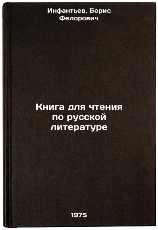 In Russian. Infantyev, Boris Fedorovich. Book for reading on Russian literature. Riga: Zvaigzne, 1973. Kniga dlya chteniya po russkoy literature. In Russian/Book for reading Russian literature. All images are for identification of editions only. Several books of the same edition may be available. Please feel free to request photos of available books. SKU7127006