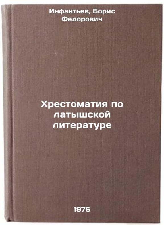 In Russian. Infantiev, Baris Fedorovich. History of Latvian Literature. Riga: Zvaigzne,. Khrestomatiya po latyshskoy literature. In Russian /History of Latvian Literature . All images are for identification of editions only. Several books of the same edition may be available. Please feel free to request photos of available books. SKU1009951