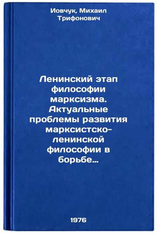 In Russian. Iovchuk, Mikhail Trifonovich. The Leninist Phase of Marxist Philosophy. Actual Problems of the Development of Marxist-Leninist Philosophy in the Struggle against Modern bourgeois Ideology and Revisionism. Moscow: AON, 1976. Leninskiy etap filosofii marksizma. Aktual'nye problemy razvitiya marksistsko-leninskoy filosofii v bor'be protiv sovremennoy burzhuaznoy ideologii i revizionizma. In Russian /The Leninist Phase of Marxist Philosophy. Actual Problems of the Development of Marxist-Leninist Philosophy in the Struggle against Modern bourgeois Ideology and Revisionism . All images are for identification of editions only. Several books of the same edition may be available. Please feel free to request photos of available books. SKU6960335