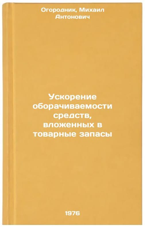 In Russian. Ogorodnik, Mikhail Antonovich. Acceleration of turnover of funds invested in inventories. Kyiv: 1976. Uskorenie oborachivaemosti sredstv, vlozhennykh v tovarnye zapasy. In Russian /Acceleration of Return on Inventory . All images are for identification of editions only. Several books of the same edition may be available. Please feel free to request photos of available books. SKU6962525
