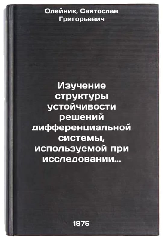 In Russian. Oleinik, Svyatoslav Grigorievich. Study of the Structure of Resilience of Differential System Solutions Used in the Study of Electromechanical Systems. Kyiv: 1975. Izuchenie struktury ustoychivosti resheniy differentsial'noy sistemy, ispol'zuemoy pri issledovanii elektromekhanicheskikh sistem. In Russian /Studying the Structure of Resilience of Differential System Solutions Used in Electromechanical Systems Research. All images are for identification of editions only. Several books of the same edition may be available. Please feel free to request photos of available books. SKU6962699