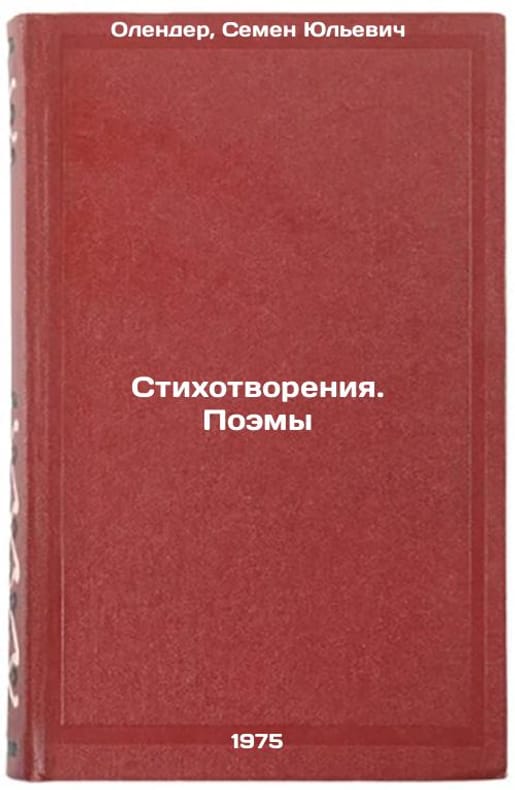 In Russian. Olender, Semyon Yulievich. Poems. Poems. Moscow: Art Lit., 1975. All images are for identification of editions only. Several books of the same edition may be available. Please feel free to request photos of available books. SKU6962711