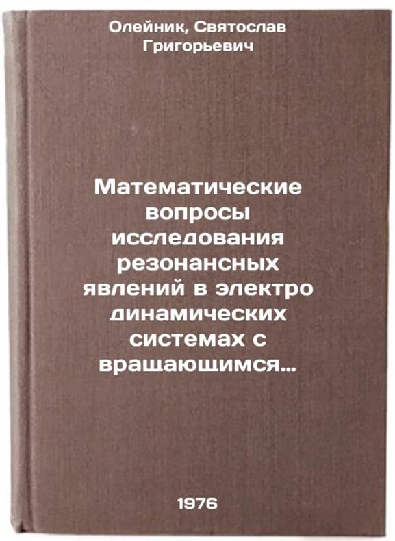 In Russian. Oleinik, Svyatoslav Grigorievich. Mathematical Issues of Research into Resonance Phenomena in Electrodynamic Systems with Rotating Electromagnetic Field. Kyiv: 1976. Matematicheskie voprosy issledovaniya rezonansnykh yavleniy v elektrodinamicheskikh sistemakh s vrashchayushchimsya elektromagnitnym polem. In Russian /Mathematical Issues of Resonance Research in Electrodynamic Systems with Rotating Electromagnetic Field . All images are for identification of editions only. Several books of the same edition may be available. Please feel free to request photos of available books. SKU6962977