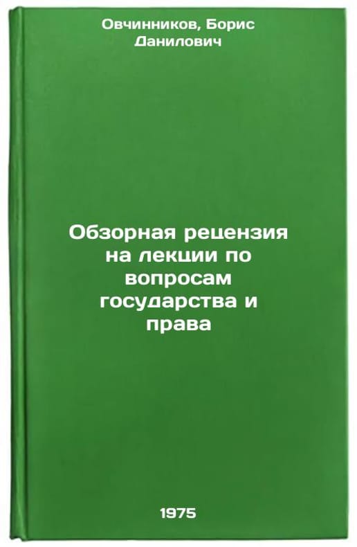 In Russian. Ovchinnikov, Boris Danilovich. Review of lectures on questions of state and law. Leningrad: 1975. Obzornaya retsenziya na lektsii po voprosam gosudarstva i prava. In Russian /Review of Lectures on State and Law. All images are for identification of editions only. Several books of the same edition may be available. Please feel free to request photos of available books. SKU6964259