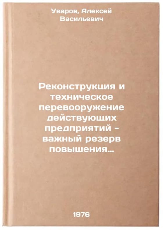 In Russian. Uvarov, Alexey Vasilievich. Reconstruction and technical re-equipment of existing enterprises is an important reserve for increasing labor productivity. Leningrad: LDNTP, 1976. Rekonstruktsiya i tekhnicheskoe perevooruzhenie deystvuyushchikh predpriyatiy - vazhnyy rezerv povysheniya proizvoditel'nosti truda. In Russian /Reconstruction and technical upgrading of existing enterprises is an important potential for increasing productivity . All images are for identification of editions only. Several books of the same edition may be available. Please feel free to request photos of available books. SKU6967790