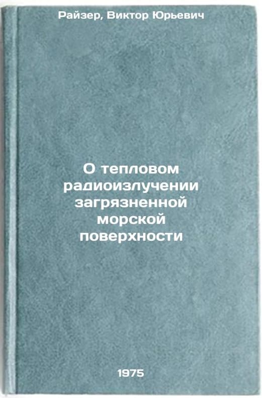 In Russian. Raiser, Viktor Yurievich. On Thermal Radiation of Contaminated Sea Surface. Moscow: 1975. O teplovom radioizluchenii zagryaznennoy morskoy poverkhnosti. In Russian /On Thermal Radiation of Contaminated Sea Surface. All images are for identification of editions only. Several books of the same edition may be available. Please feel free to request photos of available books. SKU6967988