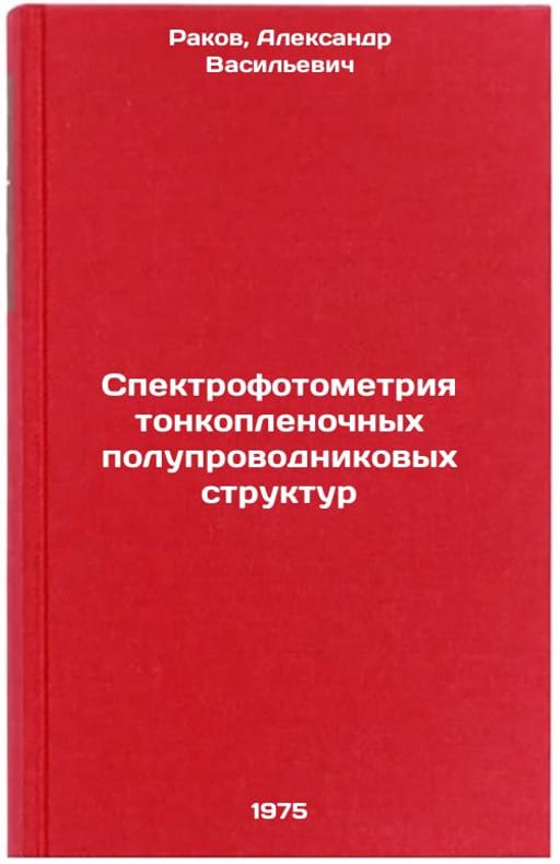In Russian. Rakov, Alexander Vasilievich. Spectrophotometry of thin-film semiconductor structures. Moscow: Sov. radio, 1975. Spektrofotometriya tonkoplenochnykh poluprovodnikovykh struktur. In Russian /Spectrophotometry of thin-film semiconductor structures. All images are for identification of editions only. Several books of the same edition may be available. Please feel free to request photos of available books. SKU6968032