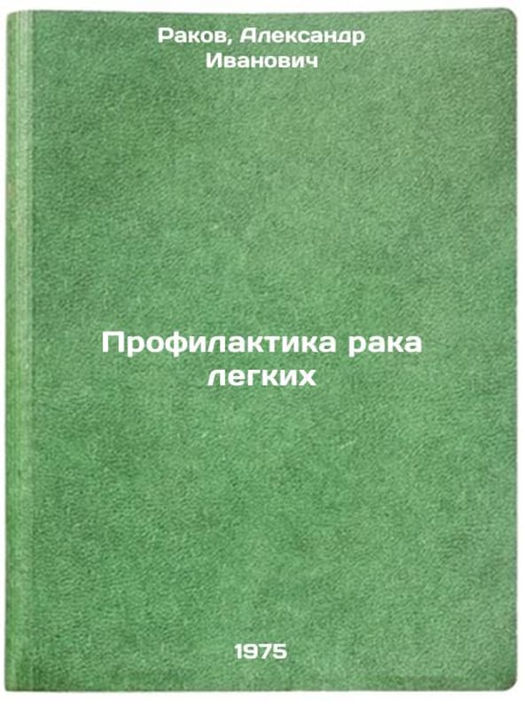 In Russian. Rakov, Alexander Ivanovich. Prevention of Lung Cancer. Moscow: Medicine, 1975. All images are for identification of editions only. Several books of the same edition may be available. Please feel free to request photos of available books. SKU6968033