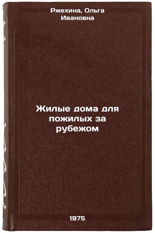 In Russian. Rzhekhina, Olga Ivanovna. Residential Homes for the Elderly Abroad. Moscow: Central STI by City and Architecture, 1975. All images are for identification of editions only. Several books of the same edition may be available. Please feel free to request photos of available books. SKU6969762