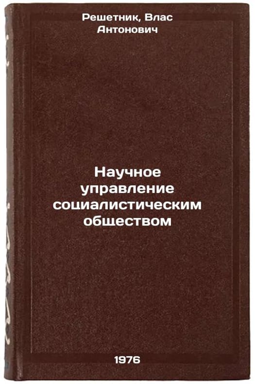 In Russian. Reshetnik, Vlas Antonovich. Scientific Management of Socialist Society. Kyiv: Vyshcha School of Economics at Kyiv University, 1976. Nauchnoe upravlenie sotsialisticheskim obshchestvom. In Russian /Scientific management of socialist society . All images are for identification of editions only. Several books of the same edition may be available. Please feel free to request photos of available books. SKU6969847