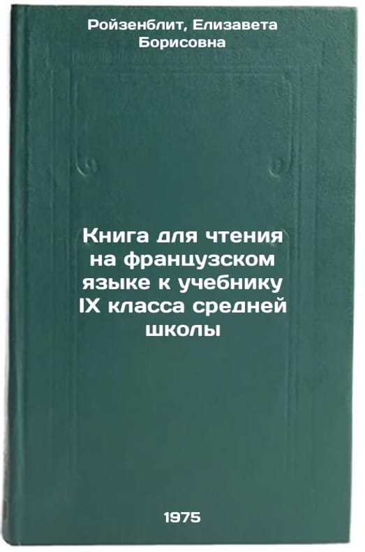 In Russian. Roizenblit, Elizaveta Borisovna. Book for reading in French to the 9th grade textbook of secondary school. Moscow: Enlightenment, 1975. Kniga dlya chteniya na frantsuzskom yazyke k uchebniku IX klassa sredney shkoly. In Russian /Book for reading in French for the ninth grade of secondary school. All images are for identification of editions only. Several books of the same edition may be available. Please feel free to request photos of available books. SKU6970101
