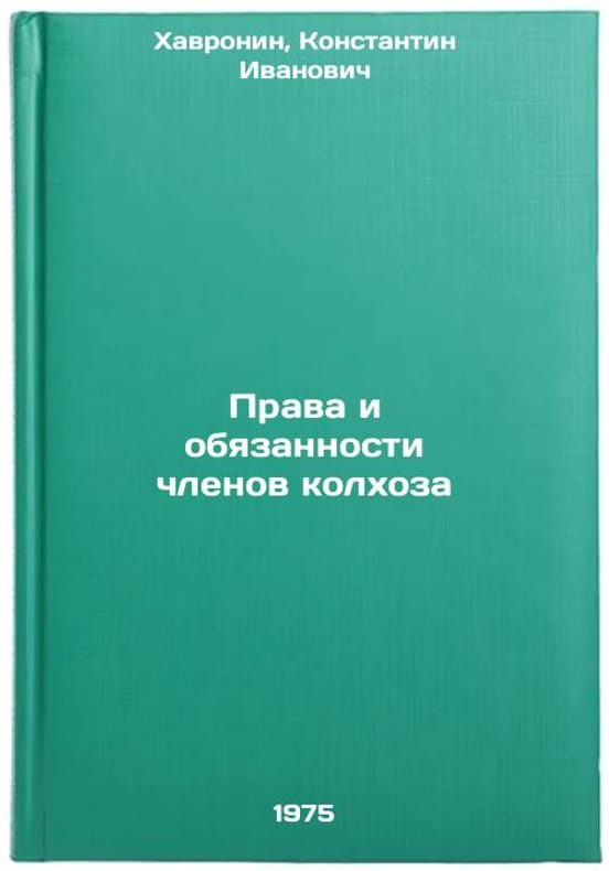 In Russian. Khavronin, Konstantin Ivanovich. The Rights and Obligations of Members of the Collective Farm. Chisinau: CCHI, 1975. All images are for identification of editions only. Several books of the same edition may be available. Please feel free to request photos of available books.SKU6970260