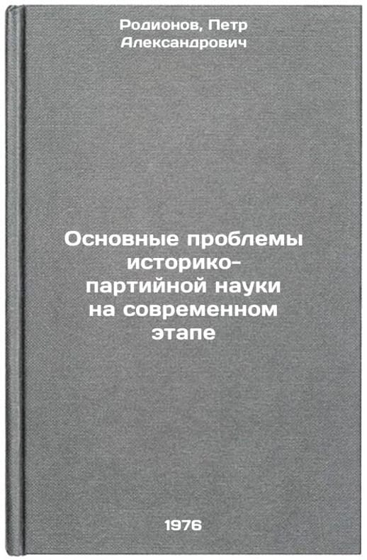 In Russian. Rodionov, Petr Alexandrovich. The main problems of historical and party science at the present stage. Moscow: Thought, 1976. Osnovnye problemy istoriko-partiynoy nauki na sovremennom etape. In Russian /The main problems of historical-party science at the present stage . All images are for identification of editions only. Several books of the same edition may be available. Please feel free to request photos of available books. SKU6970499