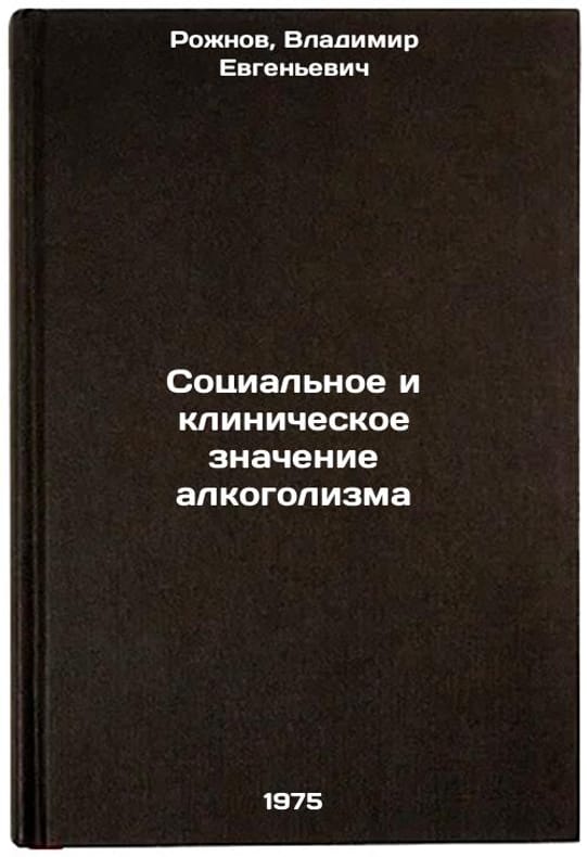 In Russian. Rozhnov, Vladimir Evgenievich. The Social and Clinical Meaning of Alcoholism. Moscow: TSOLIUV, 1975. Sotsial'noe i klinicheskoe znachenie alkogolizma. In Russian /The social and clinical meaning of alcoholism. All images are for identification of editions only. Several books of the same edition may be available. Please feel free to request photos of available books. SKU6971196