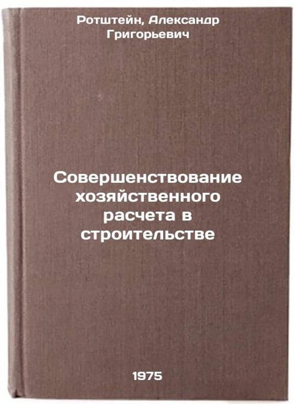 In Russian. Rotshtein, Alexander Grigorievich. Improvement of economic calculation in construction. Moscow: 1975. Sovershenstvovanie khozyaystvennogo rascheta v stroitel'stve. In Russian /Improving Business Accounting in Construction. All images are for identification of editions only. Several books of the same edition may be available. Please feel free to request photos of available books. SKU6971307