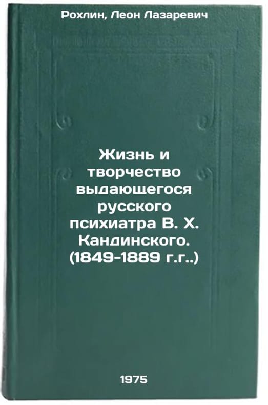 In Russian. Rokhlin, Leon Lazarevich. The Life and Creativity of the Extraordinary Russian Psychiatrist V.K.Kandinsky. (1849-1889). Moscow: Medicine, 1975. Zhizn' i tvorchestvo vydayushchegosya russkogo psikhiatra V. Kh. Kandinskogo. (1849-1889 gg.). In Russian /The Life and Creativity of the Extraordinary Russian Psychiatrist V.K.Kandinsky. (1849-1889). All images are for identification of editions only. Several books of the same edition may be available. Please feel free to request photos of available books. SKU6971316