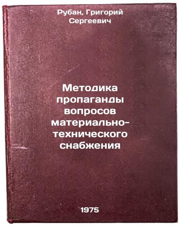 In Russian. Ruban, Grigory Sergeevich. Methodology of Propaganda of Material Supply Issues. Kyiv: 1975. Metodika propagandy voprosov material'no-tekhnicheskogo snabzheniya. In Russian /Logistics Promotion Methodology. All images are for identification of editions only. Several books of the same edition may be available. Please feel free to request photos of available books. SKU6971333