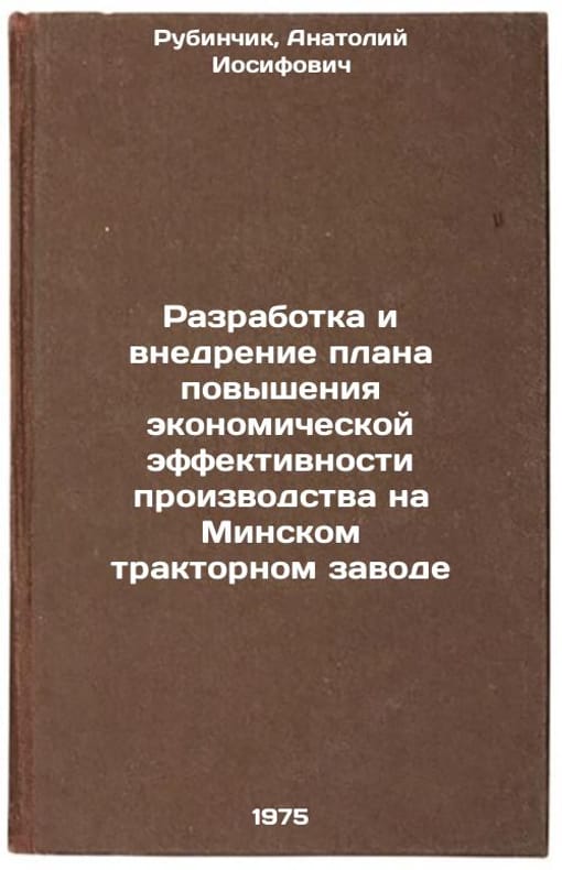 In Russian. Rubinchik, Anatoly Iosifovich. Development and implementation of a plan to increase the economic efficiency of production at Minsk Tractor Plant. Moscow: TsNIITEItracroagricultural mash, 1975. Razrabotka i vnedrenie plana povysheniya ekonomicheskoy effektivnosti proizvodstva na Minskom traktornom zavode. In Russian /Development and implementation of a plan to increase the economic efficiency of production at Minsk Tractor Plant. All images are for identification of editions only. Several books of the same edition may be available. Please feel free to request photos of available books. SKU6971360