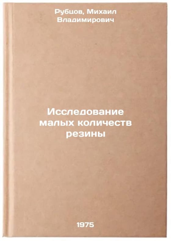 In Russian. Rubtsov, Mikhail Vladimirovich. Research of small quantities of rubber. Moscow: 1975. Issledovanie malykh kolichestv reziny. In Russian /Examination of small quantities of rubber. All images are for identification of editions only. Several books of the same edition may be available. Please feel free to request photos of available books. SKU6971381