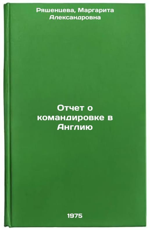 In Russian. Ryashentseva, Margarita Alexandrovna. Report on business trip to England. Moscow: 1975. All images are for identification of editions only. Several books of the same edition may be available. Please feel free to request photos of available books. SKU6971843