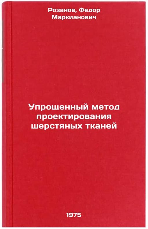 In Russian. Rozanov, Fedor Markianovich. Simplified method of designing wool fabrics. Moscow: 1975. Uproshchennyy metod proektirovaniya sherstyanykh tkaney. In Russian /Simplified method of designing wool fabrics. All images are for identification of editions only. Several books of the same edition may be available. Please feel free to request photos of available books. SKU6972014