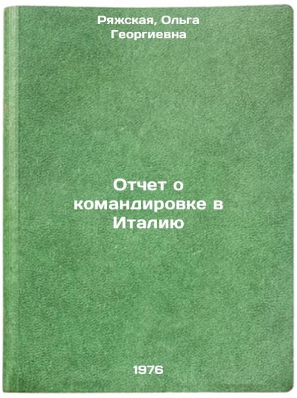 In Russian. Ryazhskaya, Olga Georgievna. Report on mission to Italy. Moscow: 1976. All images are for identification of editions only. Several books of the same edition may be available. Please feel free to request photos of available books. SKU6972661